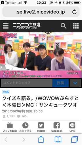 夕べニコ生でクイズを語る番組を観ました。MCがタツオさんだったから。TBSラジオ「東京ポッド許可局」で毎週聴いてるタツオさん。クイズ作家さんと演出家さんの話が面白くて。中高大のクイズ部活、研究会で学生が切磋琢磨する話とか、問題の読み方とか、問題…
