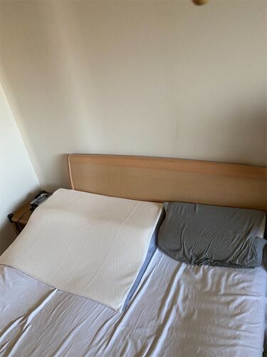 ちょっと恥ずかしい写真ですが、夫婦のベッド。夫が大きい枕を買ってきて、私の寝るスペースがすごい狭くなったー!落ちそうだよ泣。実際枕を変えた日は私の寝返りが困難で、何度も落ちそうになってなかなか寝つけなかった…夫は快適だそうです。良かったね(…