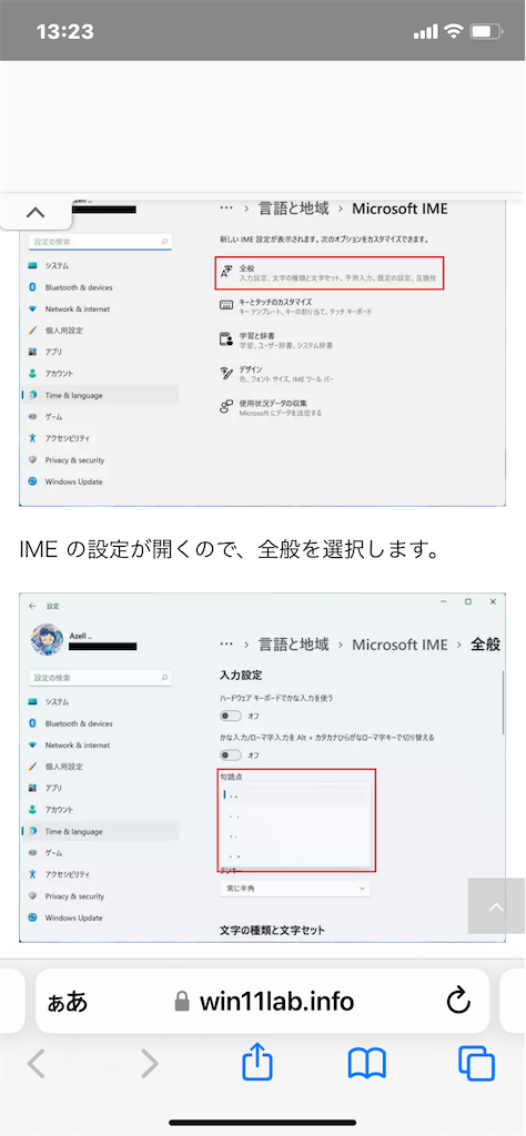 2022-11-04 文字入力 まったくネタがないので、Windows11の句読点の設定法を載せますね。 まずタスクバーの右側に「あ」「A」切り替えの入力があるのの、となりの「J」をクリックして下さい。すると上の画面が出るので、句読点の組み合わせを選んで設定します。ウチの会社は全角「 ,」と「。」です。ちゃんとしないと叱られます。 何かのお役に立てればいいのですが。 それでは。